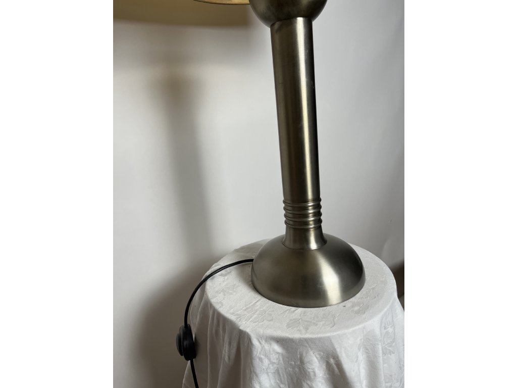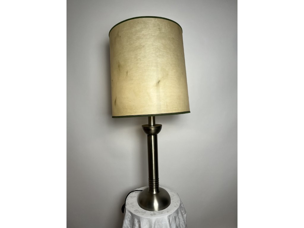 Mosazná stolní lampa s válcovým stínidlem z 30. let.